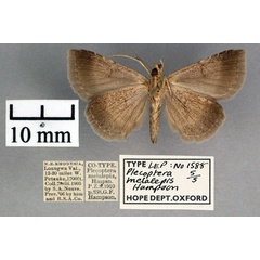 | Taxon remarks: | Type species: Plecoptera reflexa Guenée, 1852. Histoire naturelle des Insectes. VI. Species général des Lépidoptères. Noctuélites. Tome II: 430. By monotypy. Included in Catocalinae tribus Anobini by J. D. Holloway (2005: 276). |