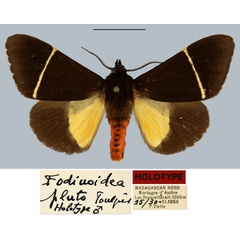 | Taxon remarks: | Type species: Fodinoidea staudingeri Saalmüller, 1884. Lepidopteren von Madagascar. Erste Abtheilung. Rhopalocera, Heterocera: Sphinges et Bombyces: 154–155; pl. 5, fig. 63. By monotypy. Tentatively placed in Arctiinae: Arctiini: Spilosomini by D. Lees & J. Minet (2022: 1169). |