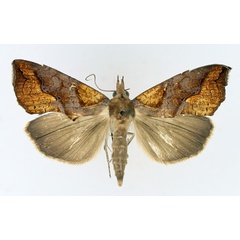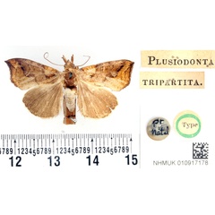 | Higher taxa: | Erebidae (family)/ Calpinae (subfamily)/ Calpini (tribe)/ Plusiodonta (genus)/ |