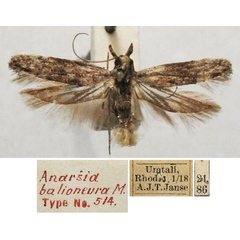 Anarsia balioneura Meyrick, 1921 Holotype TMSA Holotype ♂, type no 514, TMSA. Zimbabwe Zimbabwe, Rhodesia, Umtali [Mutare], i.1918, leg. A. J. T. Janse.