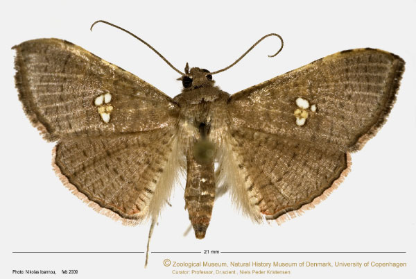 | Banisia myrsusalis (Walker, 1859) | Manilkara zapota | Sapotaceae | Whalley P. E. S. 1971. The Thyrididae (Lepidoptera) of Africa and its islands. A taxonomic and zoogeographic study. page 59 (as elaralis) | ||