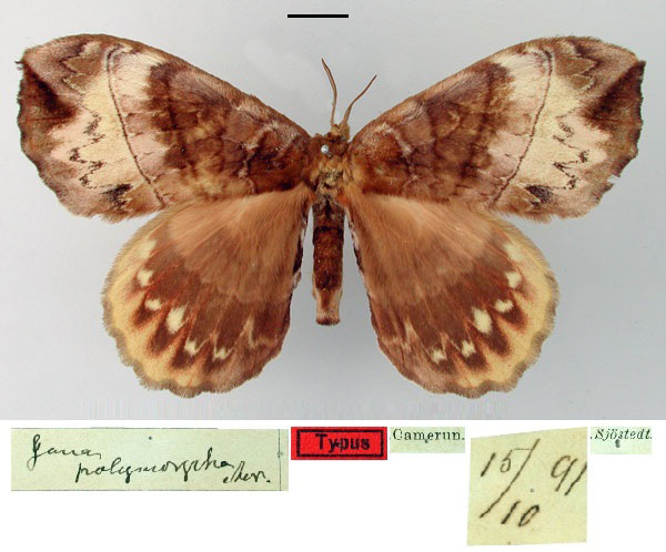 | Gracilanja polymorpha (Aurivillius, 1893) | Syntype | unknown | MfN | Syntypes, SNHM, MfN. | Sierra Leone | Sierra Leone, Freetown, leg. P. Preuss; Cameroon, Victoria, leg. P. Preuss; Itoki, 15.x.1891, leg. Y. Sjöstedt. |