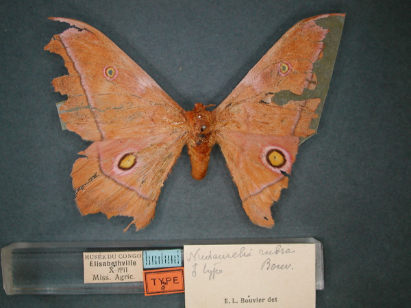 | Gonimbrasia rubra (Bouvier, 1927) | Syntype | ♂ | RMCA | Syntypes 1♂, 1♀, RMCA. | Congo, the Democratic Republic of the | [Democratic Republic of Congo, Katanga], Elisabethville [Lubumbashi], x.1911. |