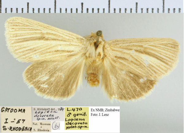 | Lopiena decorata Kiriakoff, 1975 | Paratype | ♂ | NMB | Paratype 1♂, NMB. | Zimbabwe | [Zimbabwe], S Rhodesia, Gatooma, i.1957 [1956 in original description]. |