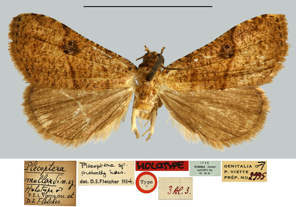 | Plecoptera mollardi Fletcher & Viette, 1955 | Holotype | ♂ | MNHN | Holotype ♂, genitalia slide P. Viette 2995♂, MNHN. | Guinea | [Guinea], Guinée française, Mont Nimba, laboratoire base IFAN, Ziela, 500 m, x.1951, leg. M. Lamotte & R. Roy. |