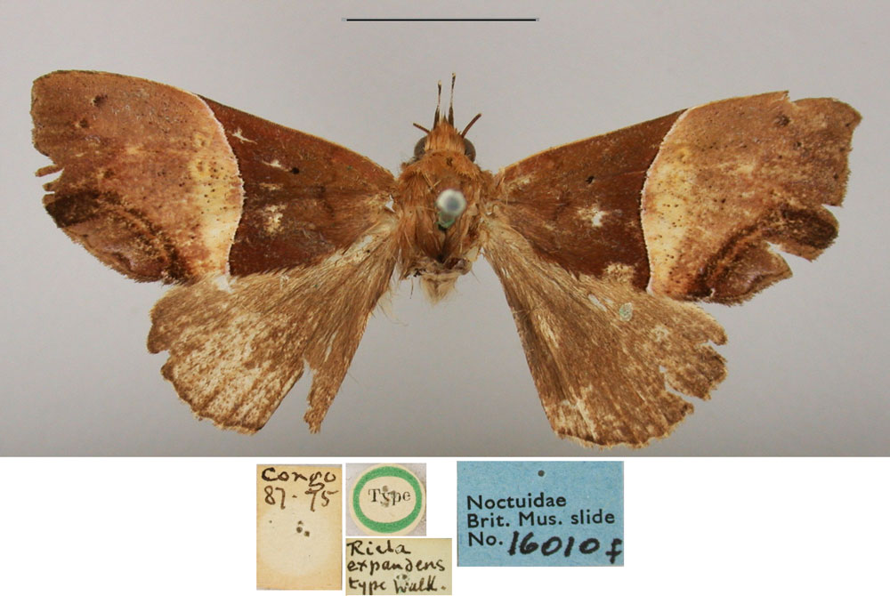 | Sarmatia expandens (Walker, 1869) | Gabon | Lödl M. 1997a. Revision der Gattung Ricla Walker, 1869 stat. rev. - Teil 1. (Lepidoptera: Noctuidae: Hypeninae). page 103 | ||