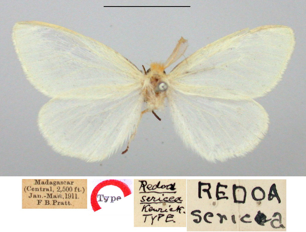 | Croremopsis sericea (Kenrick, 1914) | Lectotype | ♂ | NHMUK | Lectotype ♂, designated by P. Griveaud (1977a: 254), NHMUK. Paralectotypes ♂, ♀, number not stated, NHMUK. | Madagascar | Madagascar E, Moramanga District, near Perinet [Andasibe], Analamazaotra Forest, 910 m, i–iii.1911, leg. F. B. Pratt. | Griveaud P. 1977a. Insectes Lépidoptères Lymantriidae (1re partie). page 599 |