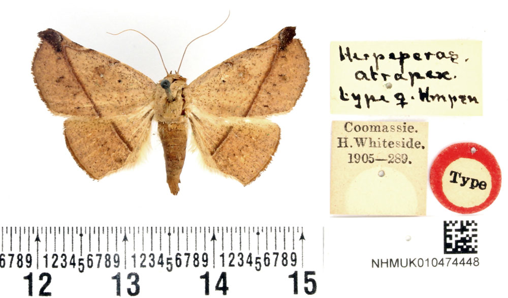 | Herpeperas atrapex Hampson, 1926 | Ghana | Hampson G. F. 1926a. Descriptions of new genera and species of Lepidoptera Phalaenae of the subfamily Noctuinae (Noctuidae) in the British Museum (Natural History). page 515 |