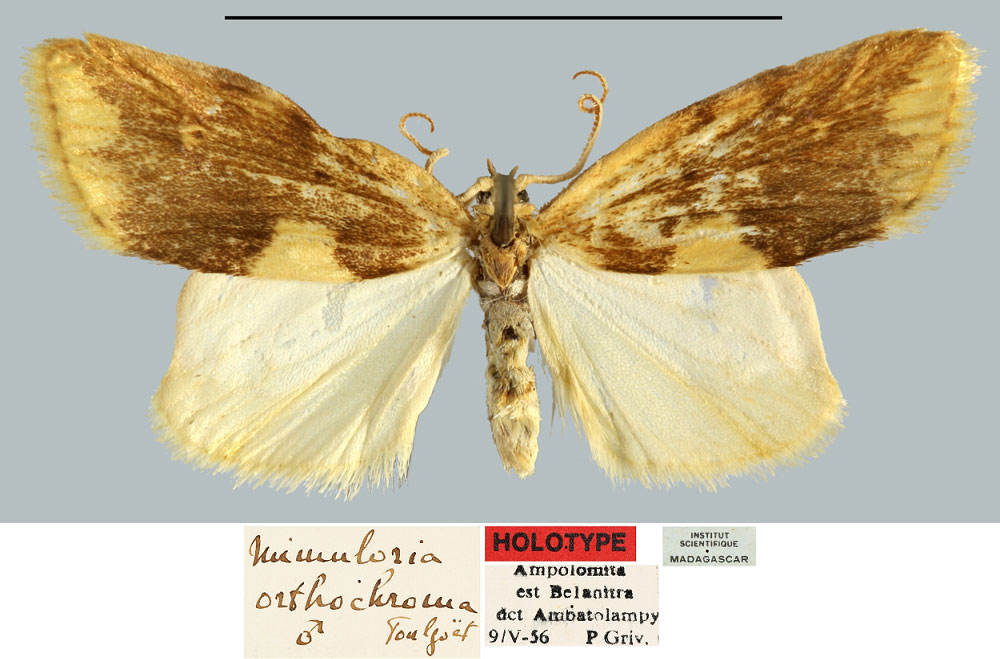 | Mimulosia orthochroma Toulgoët, 1958 | Paratype | ♂ | MNHN | Paratypes 2♂, MNHN. | Madagascar | Madagascar Central, Ampolomita, E of Belanitra, Ambatolampy District, 1400 m, 09.v.1956, leg. P. Griveaud. |