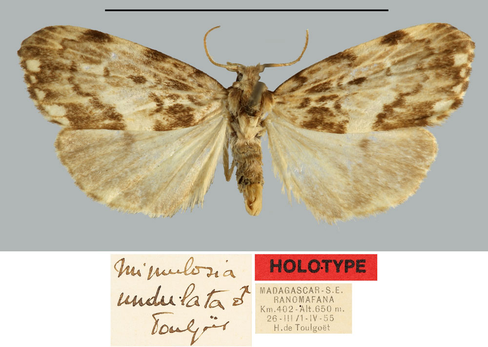 | Mimulosia undulosa Toulgoët, 1958 | Holotype | ♂ | MNHN | Holotype ♂, MNHN. | Madagascar | Madagascar E, Ifanadiana, Ranomafana, km 402, 650 m, 01.iv.1955, leg. H. de Toulgoët. |