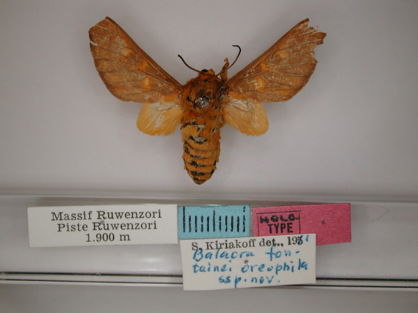 | Balacra oreophila Kiriakoff, 1963 | Holotype | ♂ | RMCA | Holotype ♂, RMCA. | Congo, the Democratic Republic of the | [Democratic Republic of Congo, Province Orientale], Parc National Albert, piste Ruwenzori, 1900 m, 07.i.1958. |