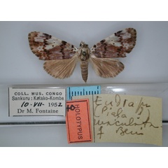 | Eudrapa maculata Berio, 1956 | Congo, the Democratic Republic of the | East Kasai | Berio E. 1956a. Diagnosi preliminari di Noctuidae apparentemente nuove. page 26 |