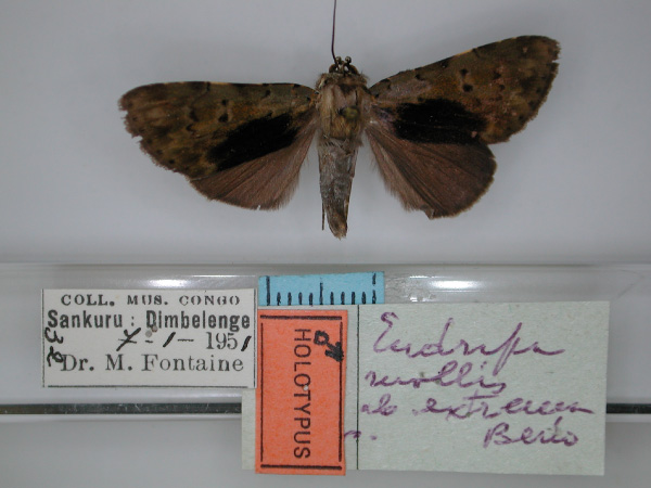 | Eudrapa extrema Berio, 1956 | Holotype | ♂ | RMCA | Holotype ♂, genitalia slide E. Berio 761♂, RMCA. | Congo, the Democratic Republic of the | [Democratic Republic of Congo, West Kasai], Congo Belga, Sankuru, Dimbelenge, 07.i.1951, leg. M. Fontaine. |