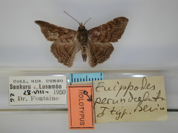 | Euippodes perundulata Berio, 1956 | Holotype | ♂ | RMCA | Holotype ♂, genitalia slide E. Berio 818♂, RMCA | Congo, the Democratic Republic of the | [Democratic Republic of Congo, East Kasai], Congo Belga, Sankuru, Lusambo, 28.viii.1950, leg. M. Fontaine. | ||
