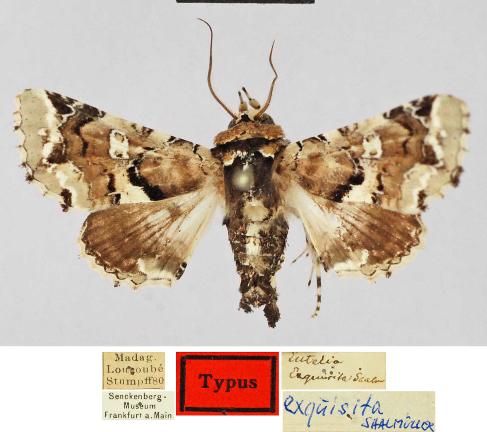 | Eutelia exquisita Saalmüller, 1891 | Holotype | ♂ | SNMF | Holotype ♂, SNMF. | Madagascar | Madagascar, Lokobe, 1880, leg. A. Stumpff. |