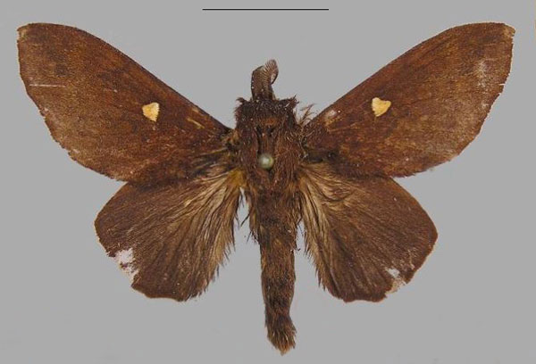 | Publication: | Weber P., Revay E. E., Verdecia V., Müller G. C., Prozorova T. A., Yakovlev R. V., Saldaitis A., Volkova J. S. & Prozorov A. M. 2024. Four new Afrotropical Hypotrabala from moist broadleaf forests and the first description of the female of H. obscura (Lepidoptera, Lasiocampidae, Lasiocampinae, Selenepherini). |