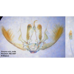 | Amyna axis Guenée, 1852 | Holotype | ♂ | Holotype ♂, coll. Guérin, not found (see C. Guillermet 2005d: 67). | French Polynesia | French Polynesia, Tahiti. | Guillermet C. 2005d. Les Hétérocères ou papillons de nuit, de l'île de La Réunion. Volume 1. Famille des Noctuidae Quadrifides. page 407 |