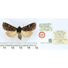| Apospasta kennedyi Fletcher D. S., 1961 | Allotype | ♀ | NHMUK | Allotype ♀, NHMUK | Uganda | [Uganda], Ruwenzori Range, Namwamba Valley, 10,200 ft, xii.1934–i.1935, leg. F. W. Edwards. | ||