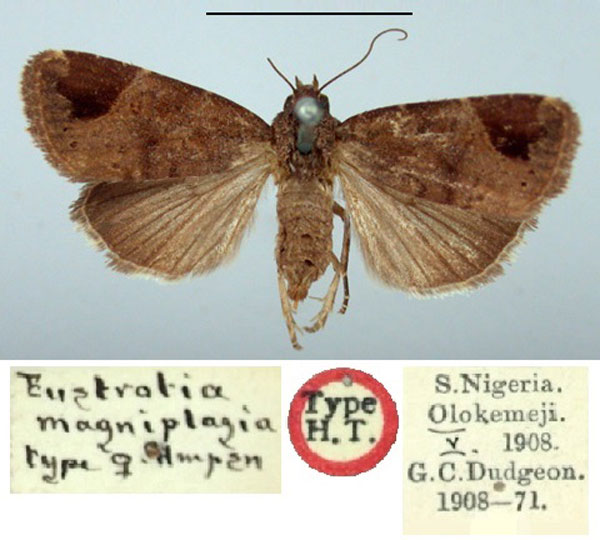 | Athetis magniplagia (Hampson, 1918) | Nigeria | Hampson G. F. 1918a. Descriptions of new genera and species of Amatidae, Lithosidae, and Noctuidae. page 184 |