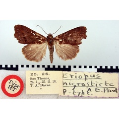 | Callopistria nigrosticta (Prout A. E., 1927) | Paratype | ♀ | NHMUK | Paratype 1♀, NHMUK. | Sao Tome & Principe | São Tomé & Principe, São Tomé, 24.i–25.ii.1925, leg. T. A. Barns. |