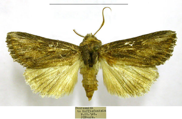 | Ectochela fulvinotata (Warren, 1914) | South Africa | Free State | Janse A. J. T. 1937–1939. The Moths of South Africa. Volume III. Cymatophoridae, Callidulidae and Noctuidae (Partim). page 178 |