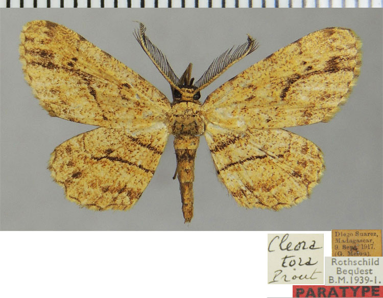 | Cleora tora Prout L. B., 1926 | Holotype | ♂ | NHMUK | Holotype ♂, NHMUK | Madagascar | Madagascar, Diego Suarez [Antsiranana], iii–ix, leg. G. Melou. | ||