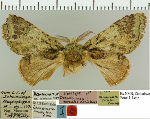 Desmeocraera dorsalis Kiriakoff, 1981 Holotype NMB Holotype ♂, genitalia slide 597♂, NMB. Mozambique Mozambique, 40 miles SE of Inhaminga, 19.viii.1971, leg. E. C. G. Pinhey.