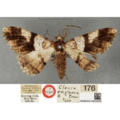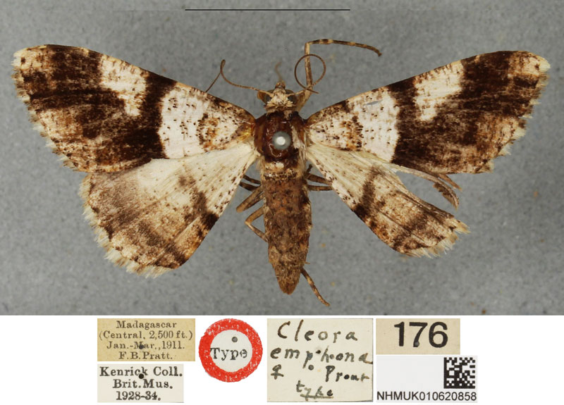 | Ectropis emphona (Prout L. B., 1925) | Holotype | ♂ | NHMUK | Holotype ♂, NHMUK. | Madagascar | Madagascar Central, ca 2500 ft, i–iii.1911, leg. F. B. Pratt. |