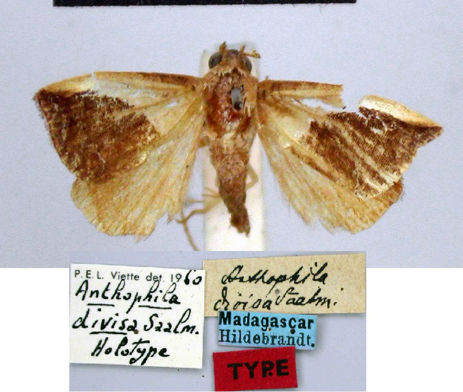 | Deltote divisa (Saalmüller, 1891) | Holotype | ♂ | MfN | Holotype ♂, MfN. | Madagascar | Madagascar, S of Betsileo, leg. J. M. Hildebrandt. |