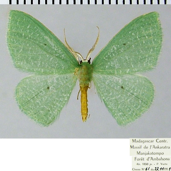 | Heterorachis diaphana (Warren, 1899) | Holotype | ♂ | NHMUK | Holotype ♂, NHMUK. | Madagascar | Madagascar, Tanola, Ivohimanitra Forest, x.1894, leg. F. Major. |