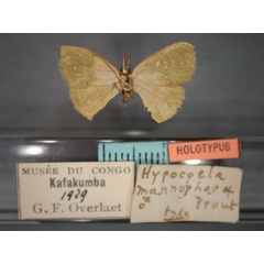 | Hypocoela mannophora Prout L. B., 1932 | Holotype | ♂ | RMCA | Holotype ♂, RMCA. | Congo, the Democratic Republic of the | [Democratic Republic of Congo, Katanga], Congo belge, Kafakumba, 1929, leg. F. G. Overlaet. |