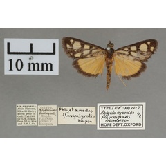| Loxostege flavinigralis (Hampson, 1910) | Paratype | ♂ | OUMNH | Paratypes 2♂, OUMNH. | Zambia | Zambia, Central Province, NW Rhodesia, Alala Plateau, Mkushi District, ca 4000 ft, xi.1905, leg. S. A. Neave. |