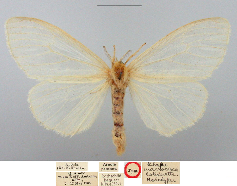 Olapa macrocerca Collenette, 1936 Holotype NHMUK Holotype ♀, NHMUK Angola Angola, Quirimbo, 75 km E of Port Amboim, 300 m, 07–12.v.1934, leg. K. Jordan.