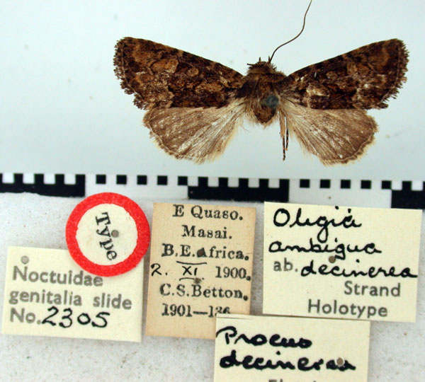 | Oligia decinerea (Fletcher D. S., 1961) | Kenya | Fletcher D. S. 1961. Ruwenzori Expedition 1952. – Noctuidae. page 101 |