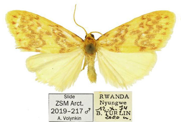 | Palaeugoa megala Volynkin & László, 2020 | Paratype | ♂ | ZSM | Paratype 1♂, genitalia slide A. V. Volynkin ZSM Arct. 183/2017♂, ZSM. | Rwanda | Rwanda, Nyungwe Forest, 2000 m, 1977-04-23, leg. B. Turlin. | ||