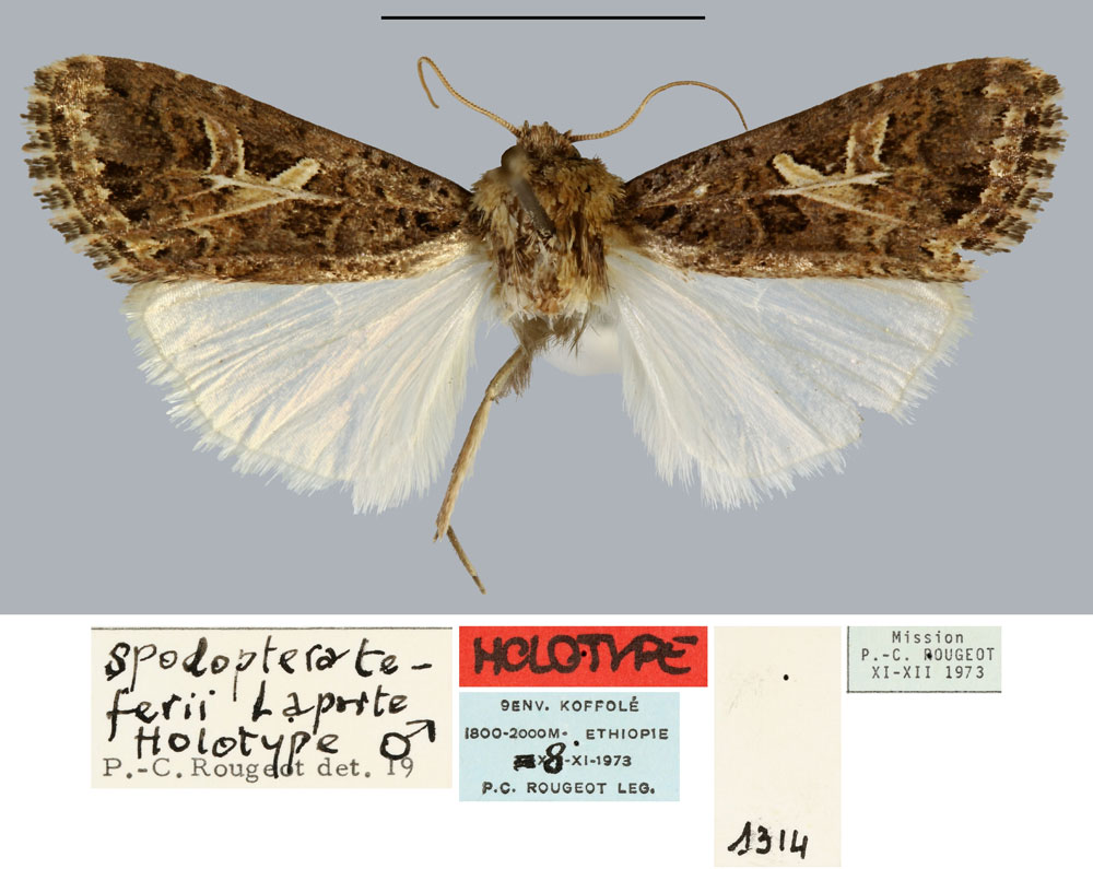 | Spodoptera teferii Laporte, 1984 | Ethiopia | Laporte B. 1984. Noctuidae (Sauf les Plusiinae). – In: Rougeot, P.-C., Missions entomologiques en Ethiopie 1976–1982. Fascicule II. page 29 |